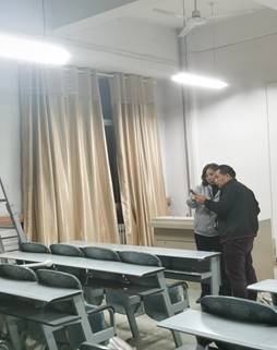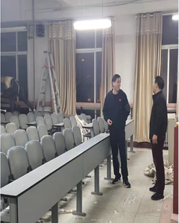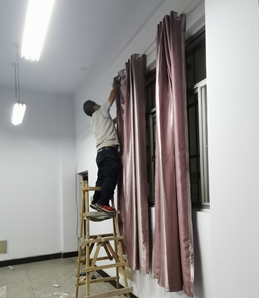 此项工作7月份启动,期间因水灾、疫情、政策调整等因素被迫暂停。10月中旬再次启动后,我处工作人员紧锣密鼓、有条不紊,在各院部鼎力协助下从合同签订到安装完毕仅用10天完成此项工作,安装过程中为不影响学生上课,利用周末、中午、晚上休息时间,日以继夜、争分夺秒,4天时间将所有窗帘安装完毕,特别是信息工程学院、继续教育学院、会计学院安装时间排在晚上,负责老师坚持到将近24点直到安装完毕才顶着夜光回家。