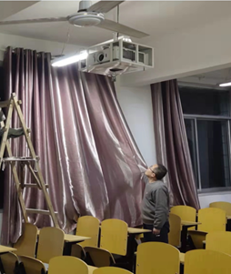 为保障多媒体教室和机房的使用效果,我处在前期摸排、与院部沟通的基础上,确定为全校83间多媒体教室和机房共计更新、安装290个窗帘,截止至11月2日已全部结束。